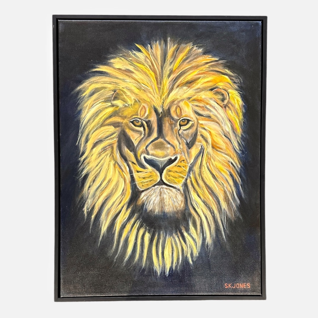 framed by artist in black floater frame.